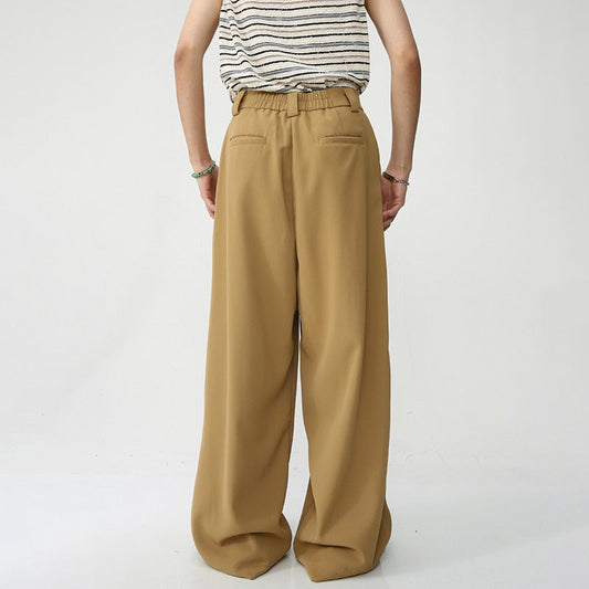 Men's Casual Suit Pants Korean New Fashion Solid Color Pleated Male Wide Leg Trousers Spring Trendy