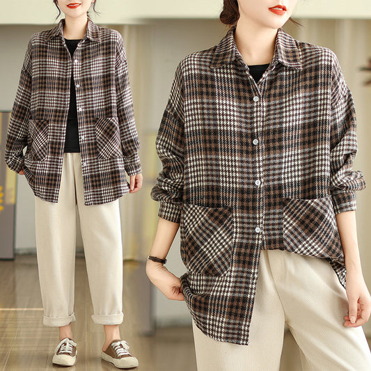 Literary plaid shirt short coat women's spring new Korean version of fashion temperament versatile plaid shirt top