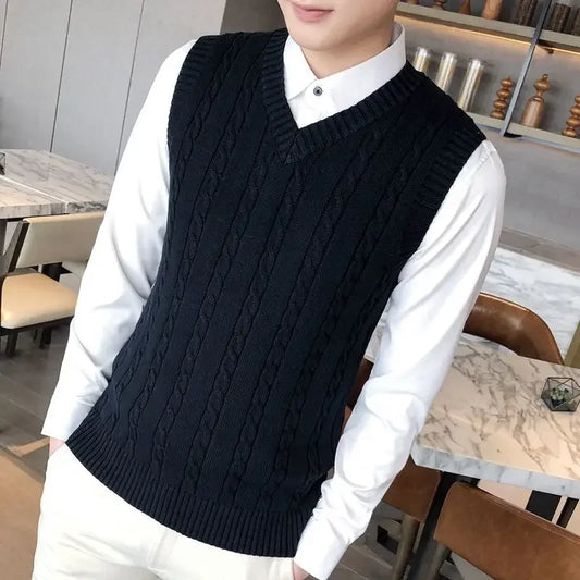 Knit Sweater Male Solid Color Sleeveless Plain Men's Clothing Blue Vest Waistcoat Jumpers Plus Size Best Selling Products