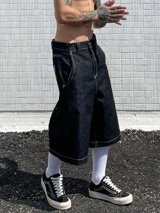 American West Coast denim shorts men's summer new trendy brand loose washed cut five-point casual pants