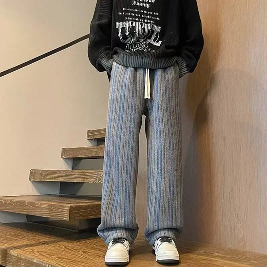 American Vintage Maillard Striped Casual Pants For Men Loose Straight Leg Wide Leg Trousers Autumn Winter Thick Woolen Pants