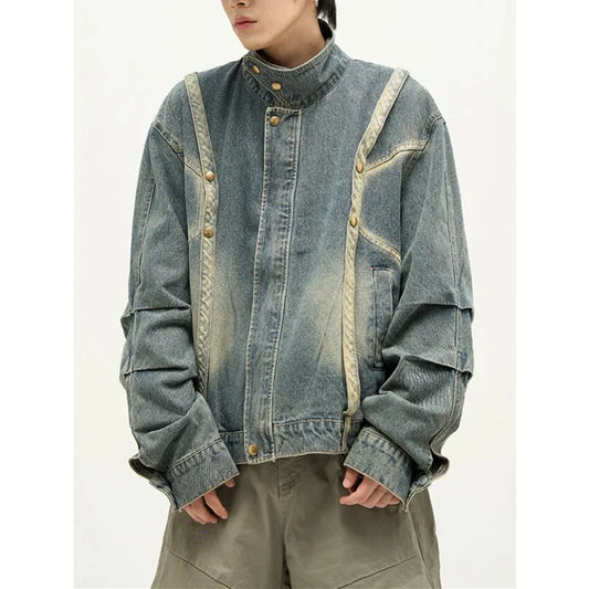 American Vintage Denim Jacket Men Women Loose Harajuku Bomber Outwear Couple Autumn Patchwork Casual Baseball Coat