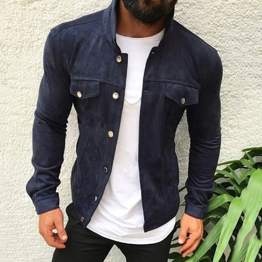 Men's Casual Luxury Jacket High Street Button Down O Neck Long Sleeve Solid Color Retro Texture Coat Autumn Korean New