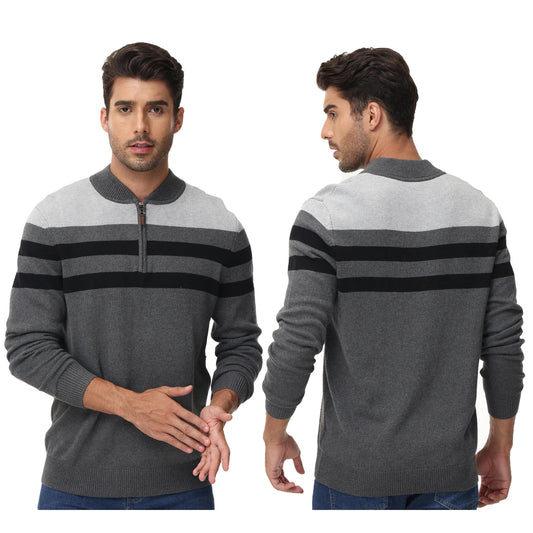 Men's Casual Patchwork Pullover Unisex Sweater Winter Fashion Sweaters 1/4 Zip Up Sweater Striped Cotton Warm Sweatershirt