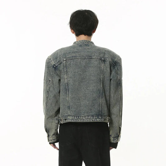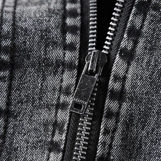 Men's Denim Coat Niche Metal Design Distressed Washed Jean Jacket Hip Hop Male Streetwear Zipper Casual Outerwear