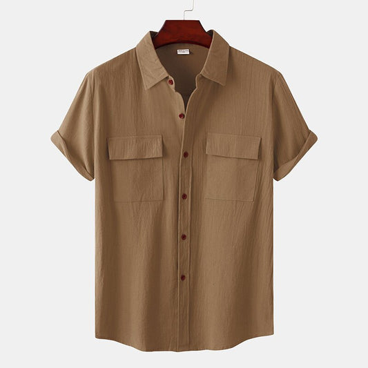 Men's Cotton Linen Summer Short Sleeve Shirt Solid Color Breathable Hawaiian Beach Male Shirts Casual Blouse For Men