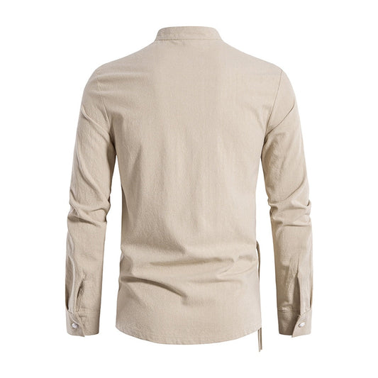 Men's Cotton Linen Shirt Long Sleeve Tee Shirts Casual Blouse Loose Large Size Shirt Spring Autumn Henry Collar Men Clothing