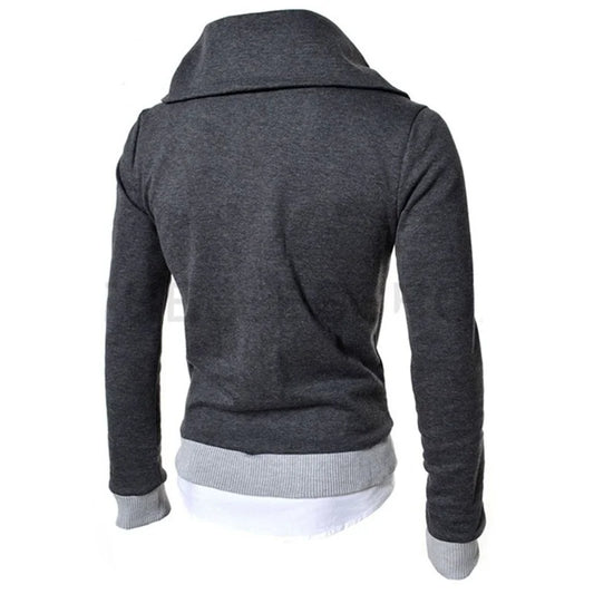 Men's Fashion Diagonal Zipper Pullover Hooded Color Matching Sweater Casual Jacket