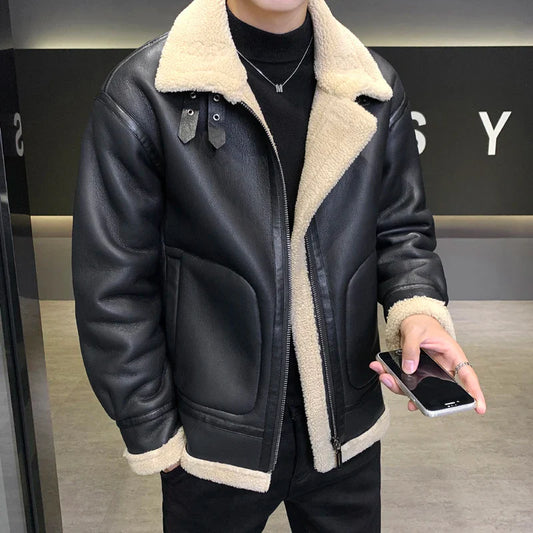 Men's Fashion High Quality Thickening To Keep Warm Leather Jackets/Man Slim Fit Lapel Casual Leather Jacket Fashion Coat 4XL-M