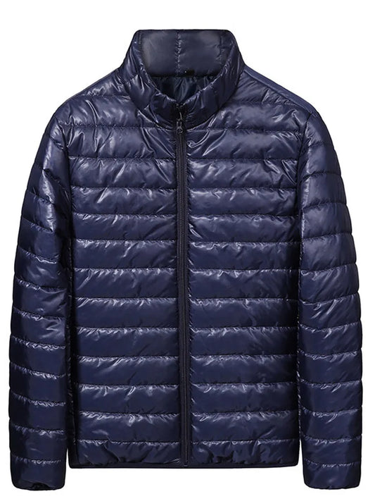 Men's Down Jacket Soft Lightweight Autumn Winter Solid Slim Padded Turtleneck Coat Male Casual Warm Long Sleeve Zipper Jackets