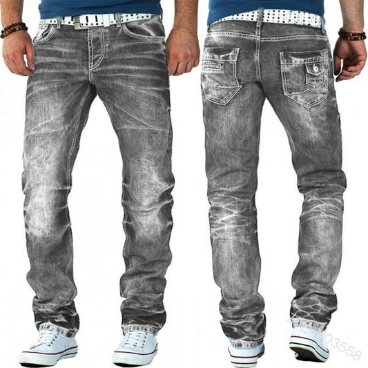 Men's Fashion Jeans Ripped Jeans Slim Fit Denim Pleated Jeans Male Straight Retro Tide Pants Jeans for Men