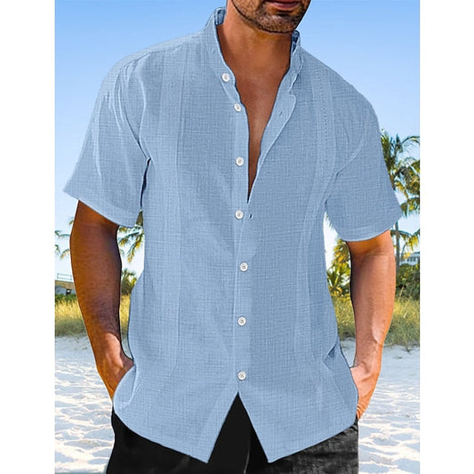 Men's Guayabera Shirt Linen Shirt Button Up Shirt Casual Shirt Summer Shirt Beach Shirt Black White Blue Short Sleeve Plain Stand Collar Summer Casual Daily Clothing Apparel