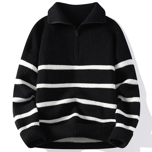 Autumn and Winter New Fashion Trend Warm Striped Sweater Men's Casual Loose Comfortable Thickened Large Size Sweater M-4XL