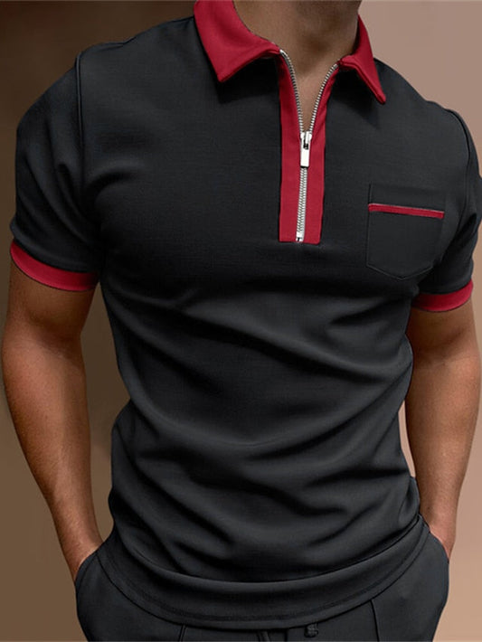 Men's Polo Shirt Golf Shirt Casual Holiday Lapel Quarter Zip Short Sleeve Fashion Basic Plain Quarter Zip Summer Regular Fit Black White Red Dark Navy Green Dark Gray Polo Shirt