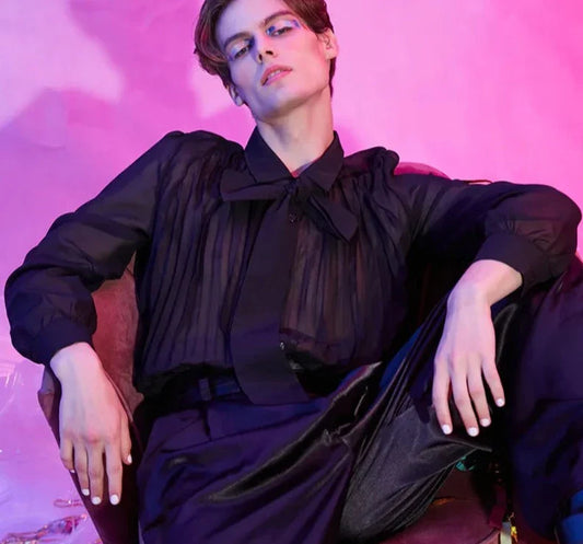 Men's Shirt Mesh See Through Lace Up Lapel Long Sleeve Camisas Streetwear Pleated Solid Party Men Clothing S-5XL