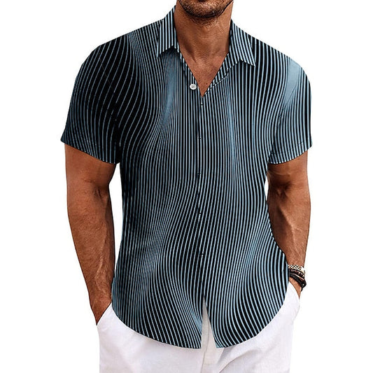Men'S Shirts Hawaiian Striped Print Short Sleeve Casual Tops Lapel Oversized Printed Shirt Harajuku Streetwear Dazn Y2k Clothes