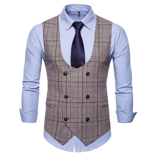 saferido New Brand Men's Business Casual Vest High Quality Men's Clothing Men's Casual Plaid High Quality Double Breasted Vest