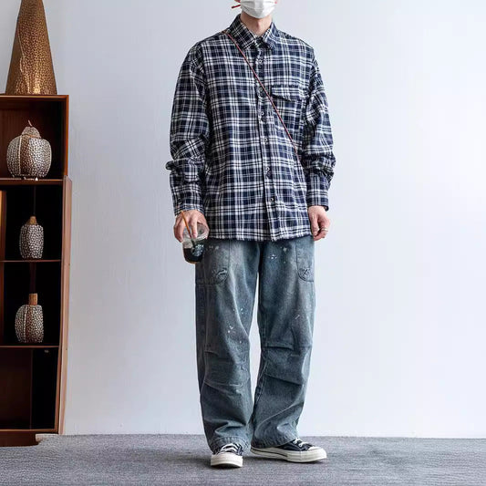 saferido -shop mens outfit inspiration Drop Jeans Men's Retro Distressed Hong Kong Style Loose Straight Pants All-Match Draping