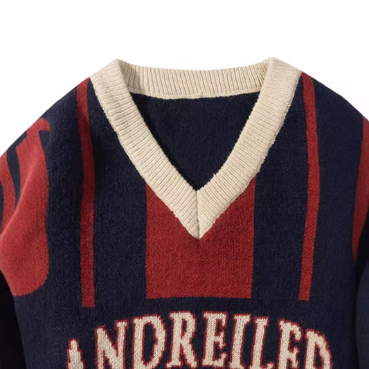 saferido -shop mens winter fashion V-neck Sweater Men's Striped Color Matching Knitted Sweater Autumn and Winter Fashion Ins Men's Clothing