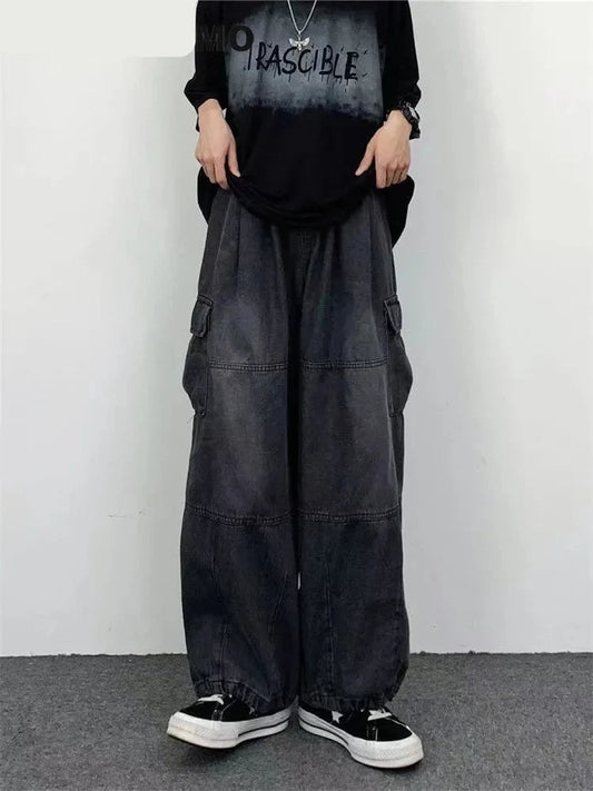 Autumn Harajuku Fashion retro High Street hiphop Pants Straight Wide Leg Pants Women Casual Loose Big Pockets Cargo Jeans