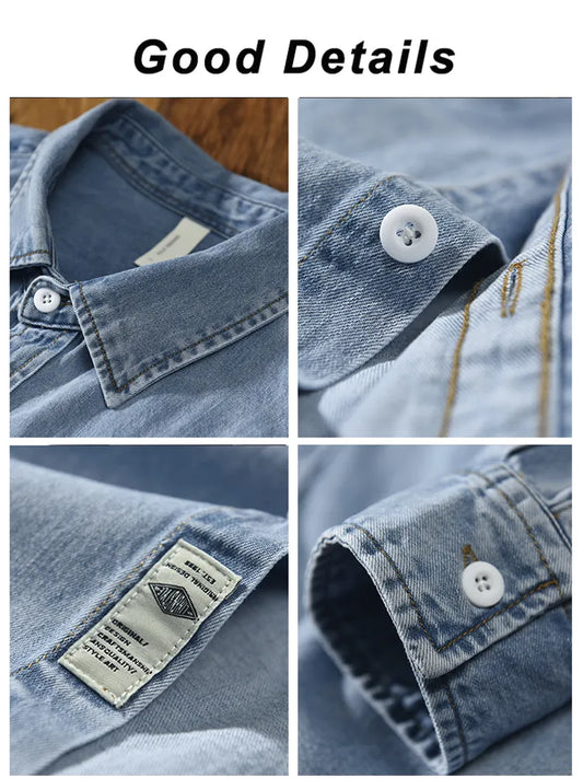 Autumn New Denim Shirt Men Classic Casual Chest Pockets Soft Cotton Long Sleeve Cowboy Loose Blue Jeans Shirts