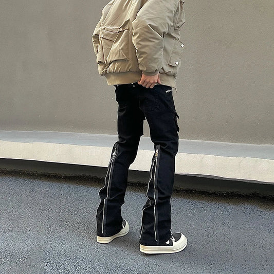 Cargo Jeans Mens Zip Pocket High Street Casual Fashion Trousers Skinny Summer Slim Streetwear Black Autumn Fit Y2k Denim Pants