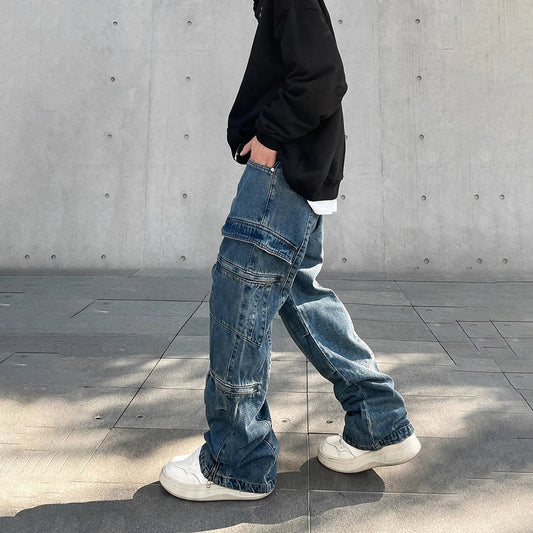 Cargo Jeans Men Autumn Y2k Baggy Streetwear Trousers High Street Casual Fashion Straight-leg Pocket Vintage Denim Pants Winter