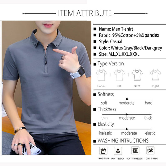 BROWON Summer Fashion Mens Tshirts Summer Cotton T Shirt Men Short Sleeve Turn-down Collar Korean Style Men T Shirt