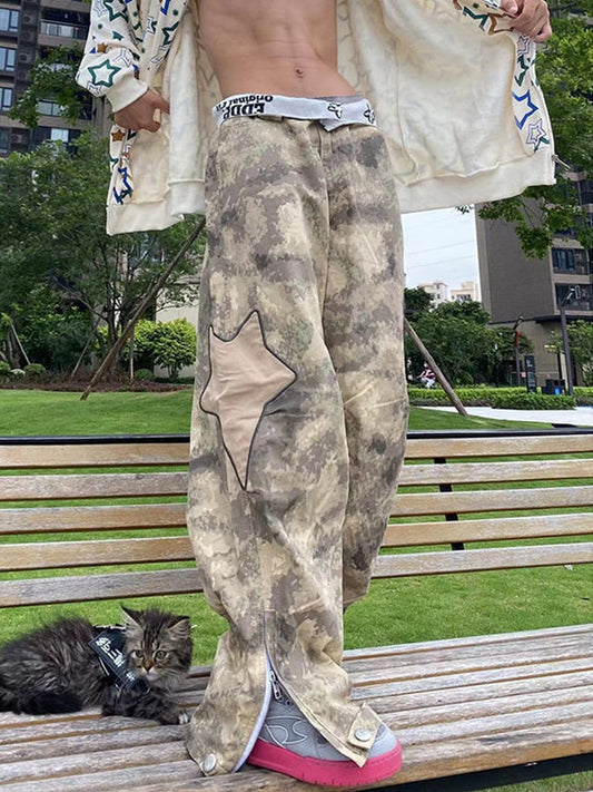 Camouflage Cargo Pants Loose Casual Multi-pocket Baggy Elastic Waist Wide-leg summer High Street jogger Hiking fatigue trousers
