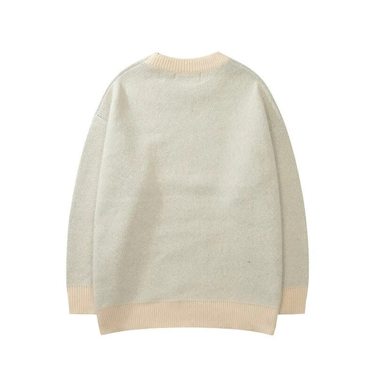 Capital Letter Print Solid Color Retro Men's and Women's Autumn Winter Sweaters Harajuku Crew Neck Oversized Baggy Knitted Top