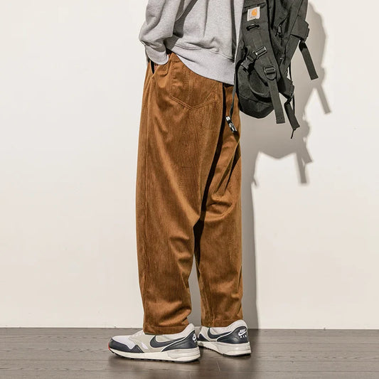 Casual Solid Color Korean Loose Straight Cylinder Sweatpants New Waist Drawcord Fashion Youth All-match Male Ninth Pants