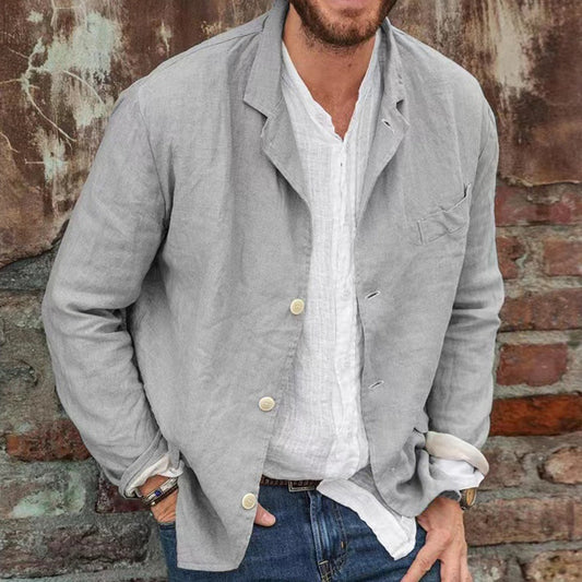 Casual Retro Elegant Cotton Linen Formal Thin Business British Style Single-breasted Solid Color Loose Suit Jacket Men's Wear