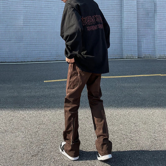 Casual Pants Men Streetwear Fashion Y2k Style Slim High Street Zip Cargo Pantalones Hombre Cool Autumn Fit Trousers Brown Summer