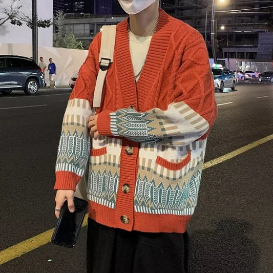 Colorful Cardigan Men Fashion British Style Traditional All-match Comfortable Baggy Twisted Knitwear Chic Advanced Long Sleeve