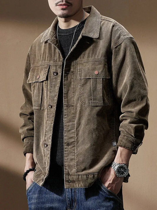 Corduroy Jacket Autumn New Men's Jacket Fashion Vintage Street Style Casual Single Breasted Coat Male Brand Clothes M110