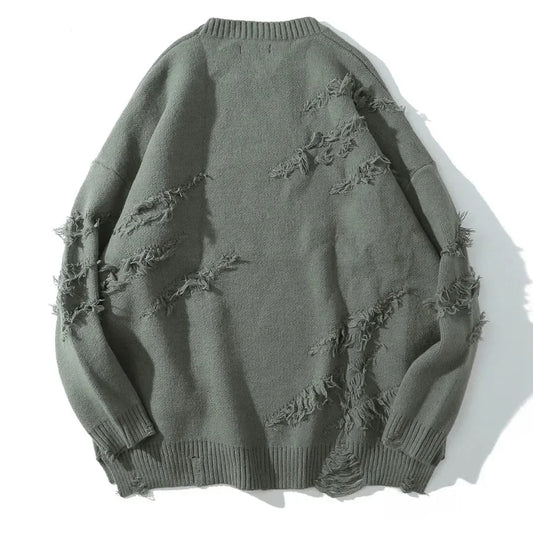 Distressed Destroyed Knitted Jumper Sweaters Streetwear Men Hip Hop Harajuku Fashion Casual Pullover Knitwear Tops