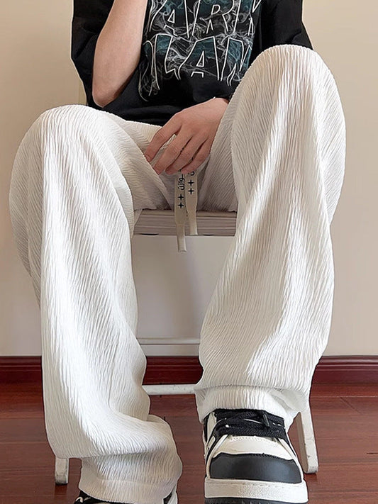 Drawstring Sweatpants Men's Fashion Casual Wide-leg Pants Men Streetwear Loose Straight Trousers Mens Joggers Track Pants S-2XL