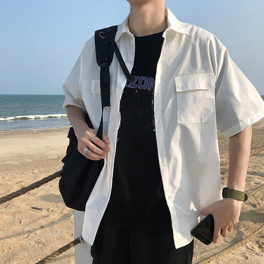 EBAIHUI Men's White Shirts with Tie Set Preppy Uniform DK Loose Long Sleeve Shirt Couple Loose Basic Short Shirts Asian Size
