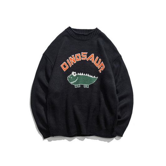 Dinosaur Lovely Sweater Men Winter Pullover Men's Sweaters Oversized Boy Student Sweater Black Khaki