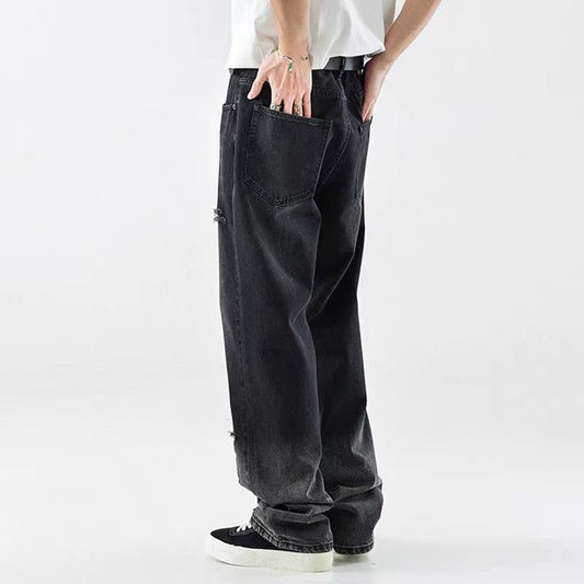 Graffiti Black Flared Denim Pants Mens Vintage Hip Hop Patches Splashed Ink Wide Leg Jeans Y2k Baggy Washed Jeans for Men