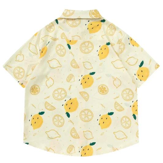 Fruit Lemon Print Summer Hawaiian Shirt Men Women Harajuku Vintage Loose Y2K Short Sleeve Aloha Shirt Korean Style Clothes