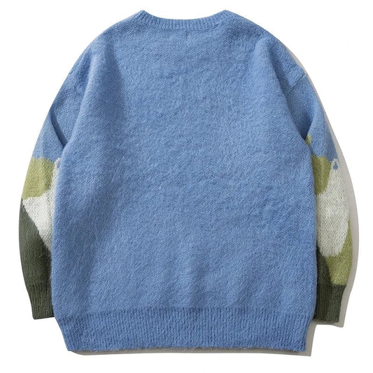 Funny Knitted Cat Embroidery Sweater Autumn Fashion Loose All-Match Pullover Winter Long Sleeve Tops
