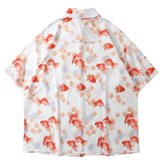 Goldfish Print Short Sleeve Loose Shirt Men Summer Y2K Streetwear Oversized Hawaiian Shirt Harajuku Casual Women Aloha Blouse
