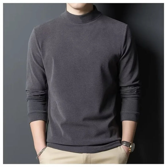 Half high collar bottoming shirt long-sleeved t-shirt men thickened handsome warm lining top