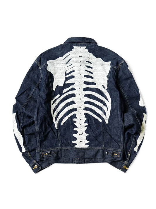 Harajuku Japanese Style Bone Embroidered Denim Jacket Men's Street Skateboard Retro Jacket Loose Casual Autumn Thin Jacket