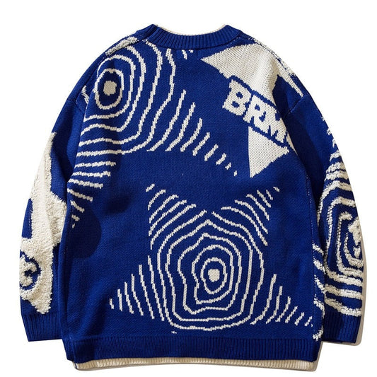 Harajuku Retro Graffiti Star Jumper Knit Sweater Men's Oversized Winter Korean Pullover Grandpa Ugly Sweater Women's Y2K Grunge