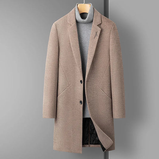 High Quality Men's Fashion Handsome Trend Casual Plus Cotton Wool Coat Coat Long Coat Men Cashmere Thick (Winter) Polyester