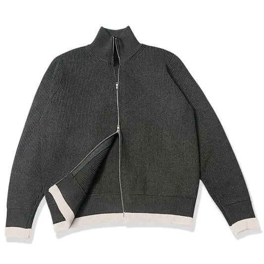 High Collar Men Winter Lambs Wool Cardigan Casual Loose Gray Zipper Knitted Sweater Fashion Contrast Long Sleeve Man Jumper New