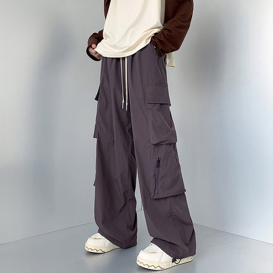 American high street retro multi-pocket overalls men's summer new ins trend loose straight versatile casual pants