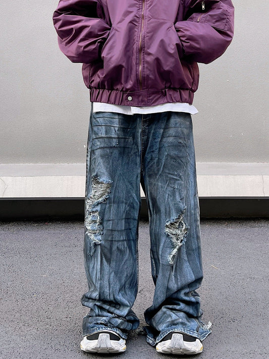 American high street heavy-duty ripped jeans men's summer new beggar pants wasteland style pants wide-leg pants